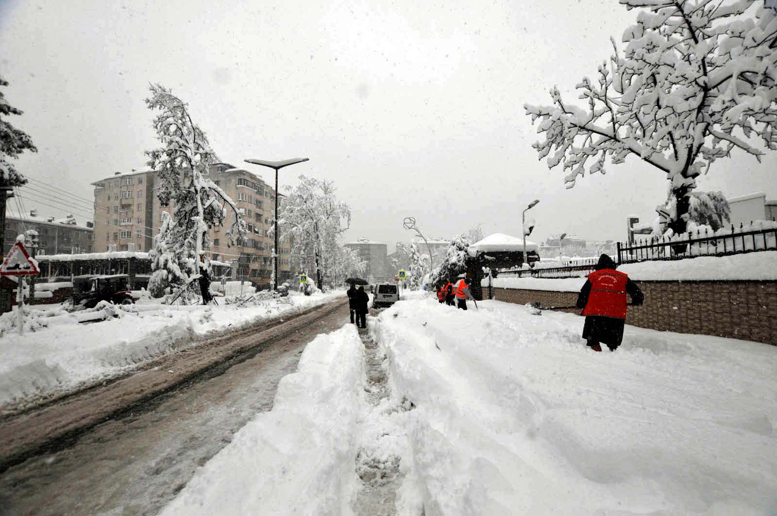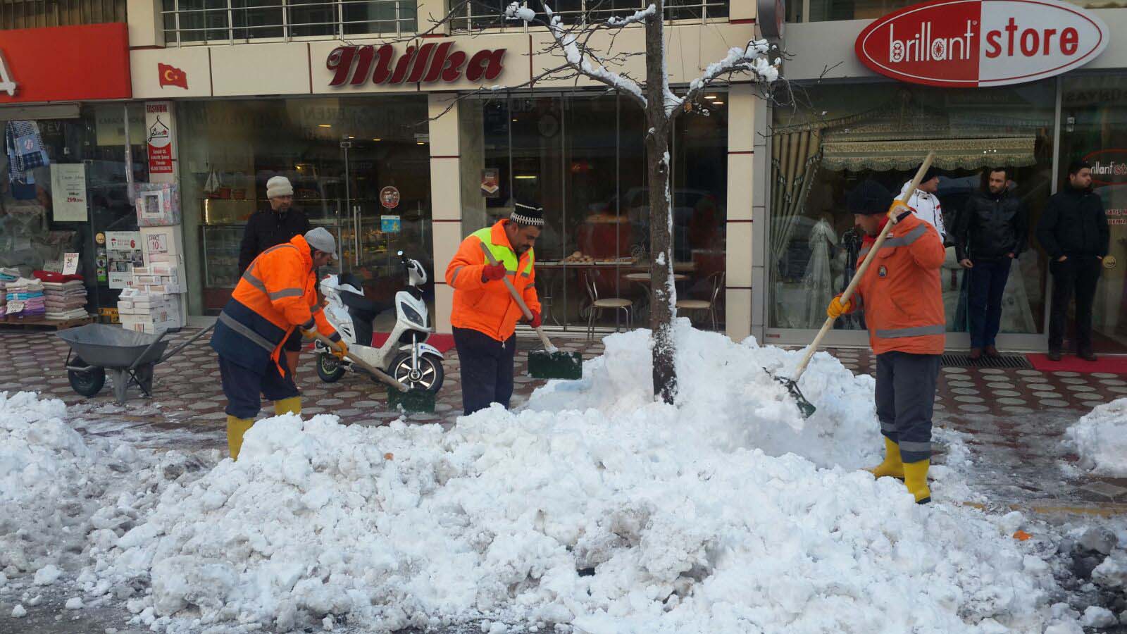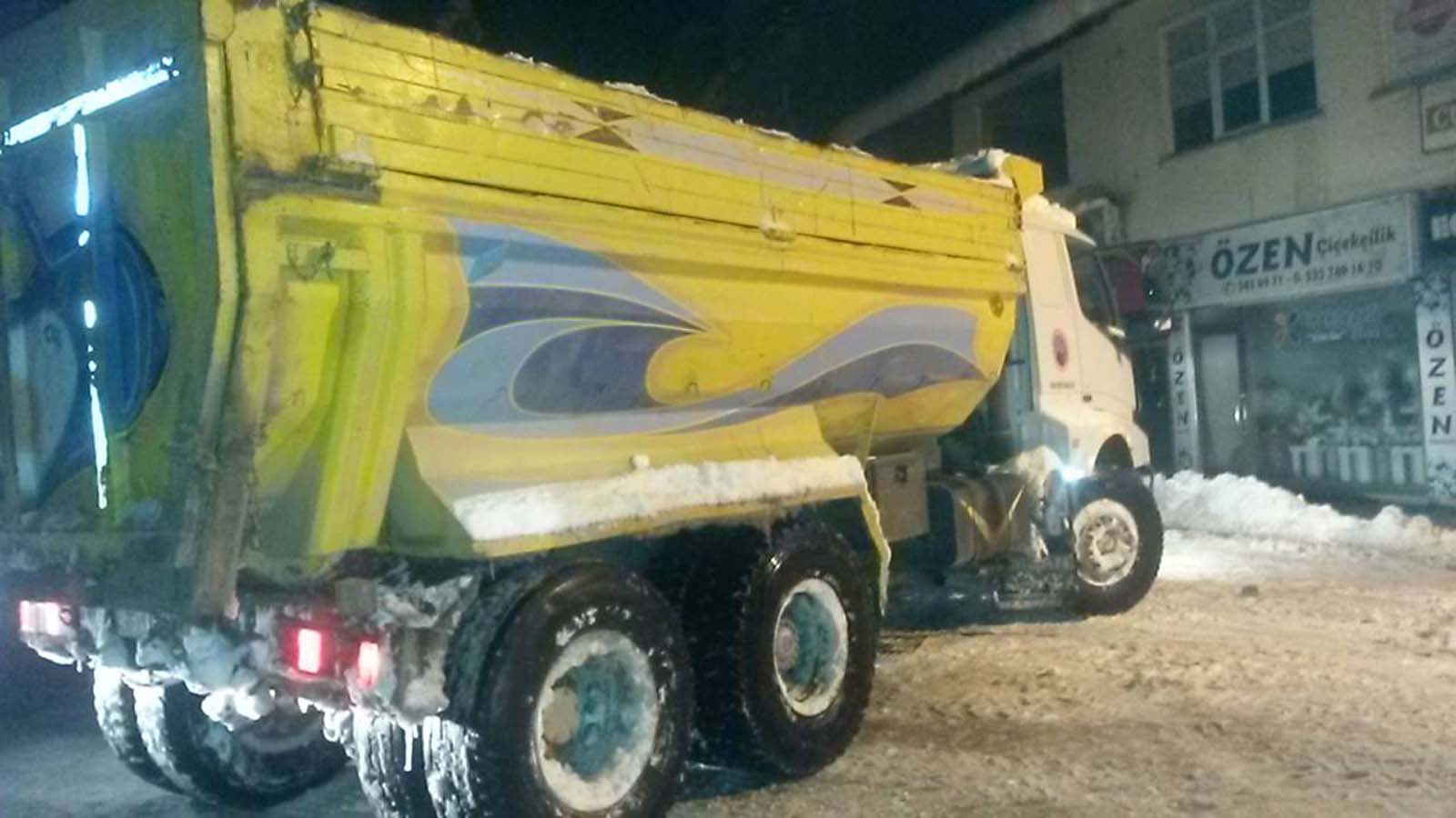 Dün akşamdan itibaren ise merkezde ana arterlerde biriken karlar kamyonlarla alınmaya başlandı. Trafiğin aksamaması için akşam saatlerinde yürütülen kar temizleme ve kaldırma çalışmaları süratle devam edecek.