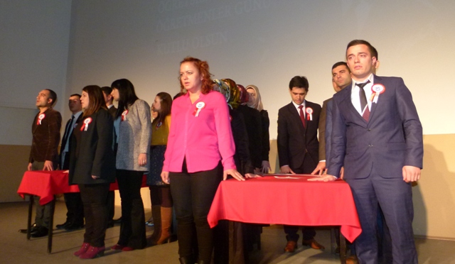 Bafra ilçesinde meslekte bir yılını dolduran ve asaletleri tasdik olan öğretmenler yemin etti. 24 Kasım Öğretmenler günü kutlama programı çerçevesinde yemin ederek mesleğe ilk adımlarını atan öğretmenlerin hayli heyecanlı oldukları görüldü.