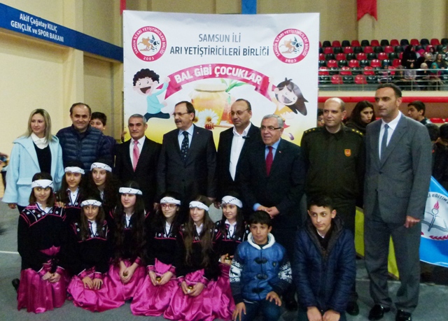 Bafra Kaymakamı Halis Arslan’ın konuşmasının ardından Samsun Arı Üreticileri Birliği "Bal Gibi Çocuklar" projesi kapsamında sevgi çocuklarına armağan ettiği balların temsili dağıtımı yapıldı.