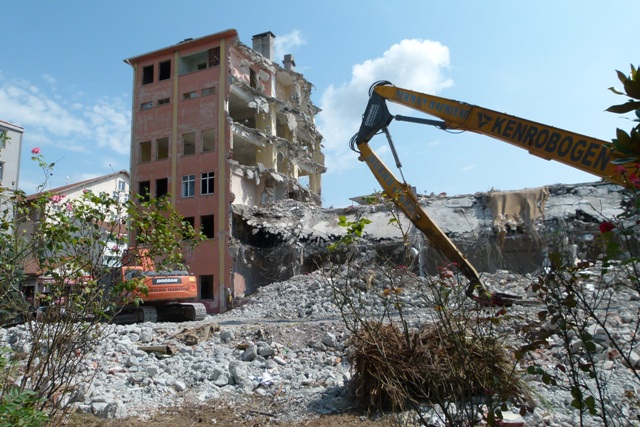 Biçer Kardeşler Metal Şantiye Müdürü Hamdi Özgüven, “Tekel binasının yıkımına bugün başladık. Öngörümüz 1,5 yada 2 ay içinde bitirmektir yıkım işini.” dedi.