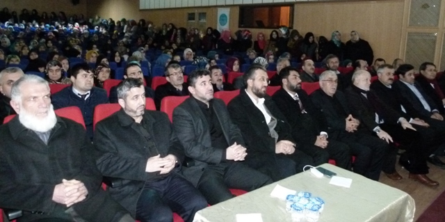 Âşık Kutlu Eğitim Merkezi Müdürü Dr. İhsan Şenocak,” Hanım kardeşim, başörtünüz üzerinde oynama, Kur’an-ı Kerim onu nasıl emretti ise, Allahu teala nasıl emretti ise ona göre görevini yerine getir. Şu günlerde, bu ümmetin en büyük belası, en büyük tehlikesi mahrumiyettir. Hazreti Muhammed Mustafa (s.a.v.) bu dünya’ya ne mutlu müslümanım diye, dünyaya geldi. Müslümanım diyen herkesin davası ne mutlu müslümanım diyenedir” şeklinde konuştu.