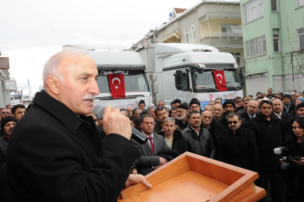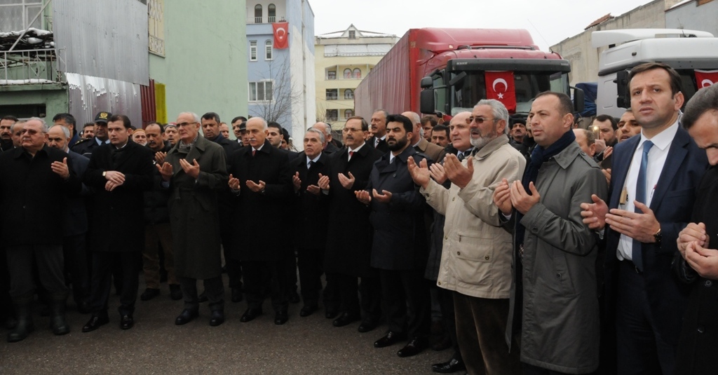 Samsun İl Müftüsü Veysel Çakı’nın yaptığı duanın ardında gıda yüklü TIR’lar dualarla yola çıktı. Yola çıkan 180 ton gıda yardımı dolu 6 TIR Hatay Yayladağı ilçesinde Diyanet Vakfı yetkililerince Kızılay yetkililerine tutanakla teslim edilecek.