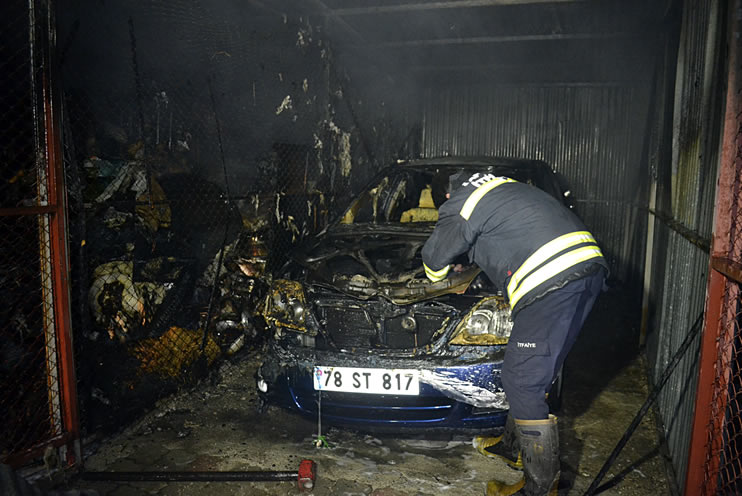 Kısa sürede 5 garaja yayılan yangın itfaiye ekipleri tarafından söndürüldü. Yangında garajlar içinde bulunan Adil Ören'e ait 78 ST 817 ve Erkan Özmen'e ait 78 SL 606 plakalı otomobil yanarak kullanılmaz hale geldi.