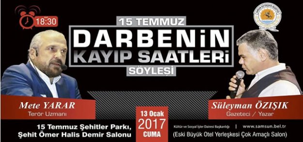 Tüm Samsunluların davetli olduğu konferans 13.01.2017 Cuma günü saat 18.30’da Eski Büyük Otel Yerleşkesindeki Samsun Büyükşehir Belediyesi Çok Amaçlı Salon Şehit Ömer Halis Demir Salonu’nda gerçekleştirilecek.