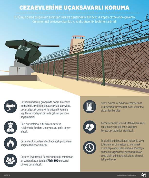 Türkiye genelindeki 387 açık ve kapalı cezaevinde güvenlik önlemleri üst seviyeye çıkarılıyor.