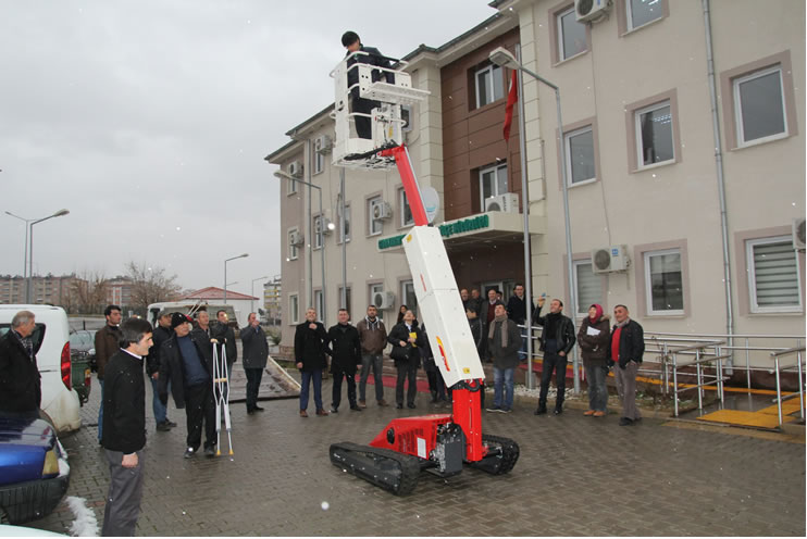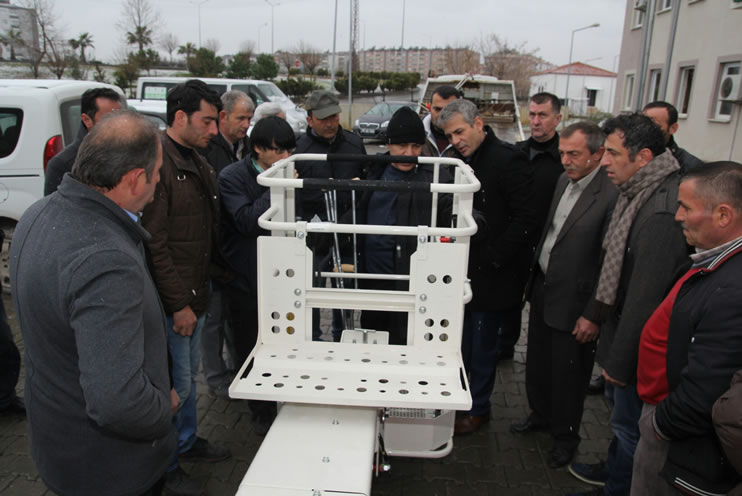 Proje kapsamında Japon bir firma tarafından üretilen, özellikle şeftali gibi ağaçların budanmasında kullanılacak olan "Bum Lift" adlı araç, paletli oluşu ve arazi içinde kolay manevra kabiliyeti ile çiftçilerin dikkatini çekti.