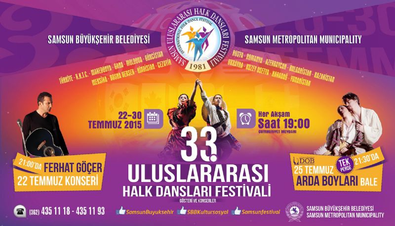 Samsun Büyükşehir Belediyesi Kültür ve Sosyal İşler Daire Başkanı Necmi Çamaş, konuyla ilgili basın toplantısı düzenledi. Eski Konservatuvar binasında yapılan toplantıda konuşan Çamaş, “Samsun Uluslararası Halk Dansları Festivali 33 yıldır devam ediyor. Geçtiğimiz 2 yılda şehrimizde yaşanan sel felaketi ve Soma’da yaşanan maden felaketi yüzünden 2 kez iptal edilmişti. Bu yıl festival Cumhuriyet Meydanı’nda 30 Temmuz’a kadar devam edecek. Halk Dansları Festivali’ne 16 ülkeden yaklaşık 550 sporcu katılacak. Bu yıl farklı olarak açılış sonrasında Çiftlik Caddesi’nde devam edecek korteje Samsun Milletvekilleri, Valimiz, Büyükşehir Belediye Başkanımız ve ünlü sanatçı Ferhat Göçer de iştirak edecek. Cumhuriyet Meydanı’ndaki kısa gösterilerden sonra açılış akşamı Ferhat Göçer konseri ile programımızı başlatacağız" diye konuştu.
