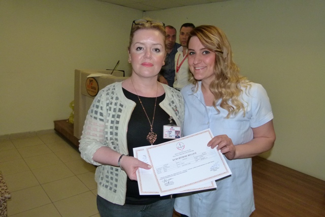 Bafra Halk Eğitim Merkezi bünyesinde 64 saatlik bir diksiyon dersi sonucu belge almaya hak kazanan 50 personel, Özel MediBafra Hastanesi konferans salonunda sertifikalarını, Bafra Halk Eğitim Merkezi Müdür Yardımcısı Mustafa Sekmen, Özel MediBafra Hastanesi Mesul Müdürü Başhekim Dr. Hamiyet Çaylı, Özel MediBafra Hastanesi İşletme Müdürü Dr. Şafak Aygül ve Halk Eğitim Merkezi Diksiyon usta öğreticisi Erdinç Ertuğrul’dan aldı.