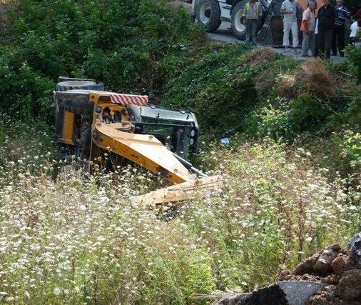 AKMERCAN Delta Doğalgaza ait iş makinesi 10 metrelik uçuruma yuvarlandı.
