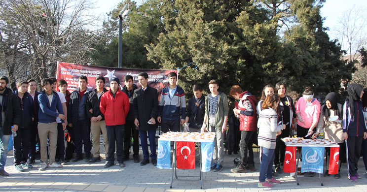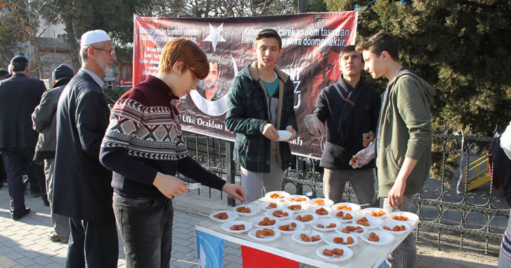 Vezirköprü Belediyesi önünde bir araya gelen Vezirköprü Ülkü Ocakları üyeleri, vatandaşlara tatlı ikram etti, daha sonra Çakıroğlu için dua edildi.