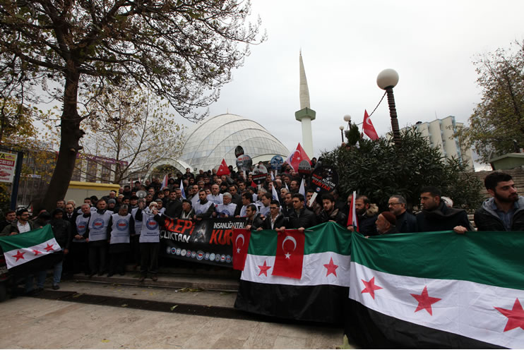 Memur-Sen Samsun İl Temsilciliğince Site Camisi'nde cuma namazının ardından düzenlenen etkinlikte, Türkiye ve Suriye bayrakları taşıyanlar, Halep'te yerleşim yerlerine saldırılar sonucu sivillerin yaşamını yitirmesini protesto etti.