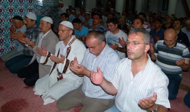 Kentteki camilerde ramazan ayının başlaması dolayısıyla teravih namazı öncesi Kur'an-ı Kerim okundu ve dualar edildi.