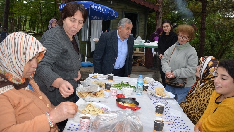 Bafra Kaymakamı Halis Arslan, Bafra 75. Yıl Huzurevindeki yaşlılarla birlikte, Sürmeli Mahallesindeki Organik Pazar da sabah kahvaltısı yaptı.