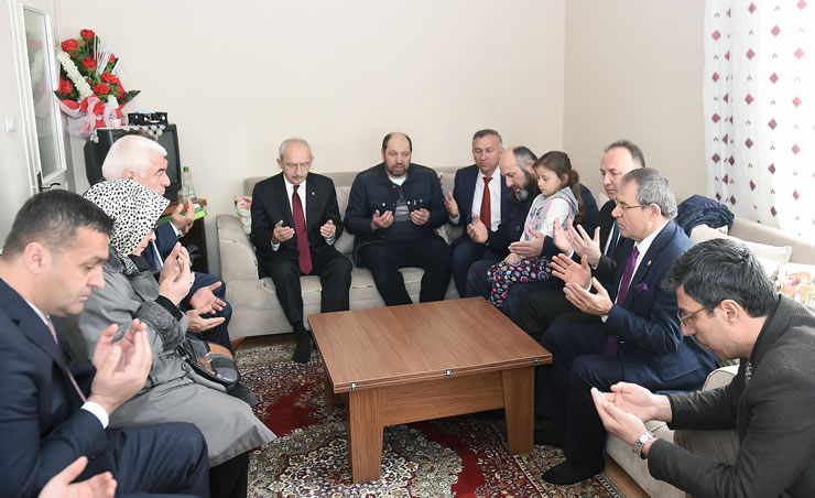 Kılıçdaroğlu ile beraberindekiler, ocak ayında Fırat Kalkanı Harekatı kapsamında Suriye'nin kuzeyindeki El Bab'ın Suflaniyah bölgesinde terör örgütü DEAŞ mensuplarınca bomba yüklü araçla düzenlenen saldırıda şehit olan Piyade Uzman Onbaşı Taşkın'ın ailesini ziyaret etti.