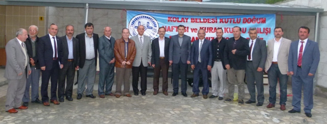 Kolay Mahallesinde, Kutlu Doğum Haftası etkinliği Selçuk Esen hocanın Kur'an-ı Kerim tilaveti ile başladı. Kur'anın insanlık için önemli bir kitap olduğunu belirten Kolay Merkez Camii İmam Hatibi Hamit Tik hocada teşekkür konuşması yaptı.