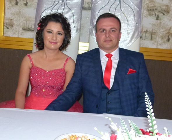 Evliliğe ilk adım atan Sezgin Şahin ve Yasemin Ertaş çiftinin nişan yüzüklerini çifte mutluluklar dileyen İsmail Özensel taktı.