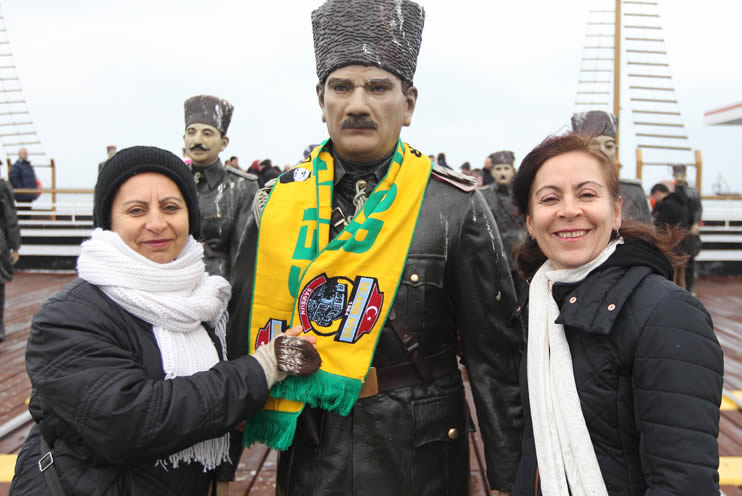 Kurtuluş Yolu üzerindeki Tütün İskelesi'nde toplanan mübadiller, saygı duruşunda bulunarak İstiklal Marşı'nı okudu.