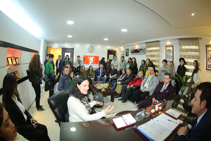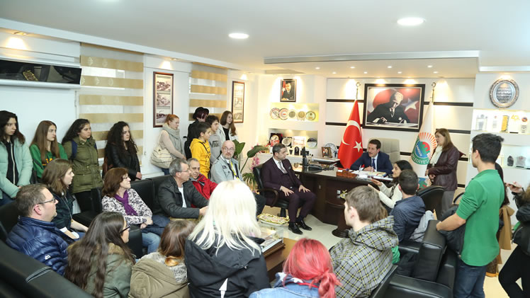 İspanya, İtalya, Almanya, Yunanistan ve Finlandiya ülkelerinin okullarından gelen yönetici, öğretmen ve öğrencilerden oluşan 19 kişilik heyet İlkadım Belediye Başkanı Erdoğan Tok’u ziyaret etti.