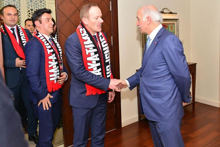 Ziyaretin sonunda Samsunspor Başkan Yardımcısı Ömer ÇORUH ve beraberindekiler Vali ŞAHİN’e üzerinde 'Hayatımız Samsunspor' yazılı bir atkı takdim etti.
