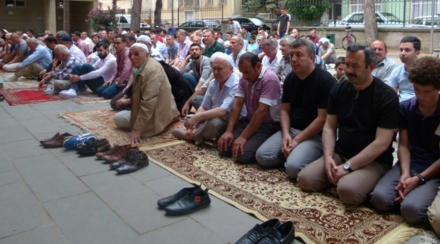 Cami ve avluda kendilerine yer bulamayan vatandaşlar, Cuma Namazı'nı kılmak için caminin bahçesi ve çevresinde saf tuttu.