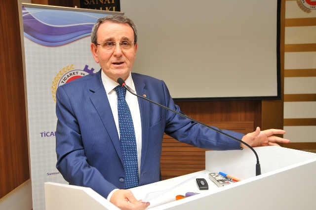 “Sizlerin de kendi bankalarınızı, kendi şahsi itibarınızı ve kariyerinizi korumak adına hassas davranmak gerektiğinizin farkındayız Ancak masanın her iki tarafının da menfaatini göz önüne almak zorundayız. Neticede mevzubahis olan sadece bir şirket değil, bir Samsun markası, binlerce çalışan ve onların aileleridir. Son günlerde şehrimizde bazı firmalarda yaşanan finansman sıkıntılarından dolayı bu firmalarla alakalı alakasız başka firmaların kredilerinin geri çağrıldığı veya onlara kredi verme hususunda zorluk çıkarıldığına dair üyelerimizden şikayetler almaktayız. Bizler, yani bankacılık sektörü ve işletmeler hepimiz aynı gemideyiz. Gemide yer alan firmalarımızın göreceği zarar sizleri de olumsuz etkileyecektir. Bir işletmenin kapanması demek, sadece bir işletmenin yok olması anlamına gelmez. Pek çok kişinin işsiz kalmasına, sizin müşteri kaybetmenize ve ekonomik bağlamda bir sürü olumsuzluk demektir. Değerli arkadaşlar; pastayı büyütmeliyiz. Pasta ne kadar büyürse sizin alacağınız pay artacağı gibi ekonomimizde o kadar büyüyecektir. Bir başka düşüncemiz ise reel sektörün ileride büyük sıkıntıya girmemesi için firmalarımızın sicilini bozmadan bankalara kredileri yeniden yapılandırma yetkisi verilmesi uygulamasının getirilmesidir. Bu konuda biz Odalar olarak lobi yapıyoruz. Sizin de sektör olarak bize bu görüşümüzde katkı vermenizi bekliyoruz.”