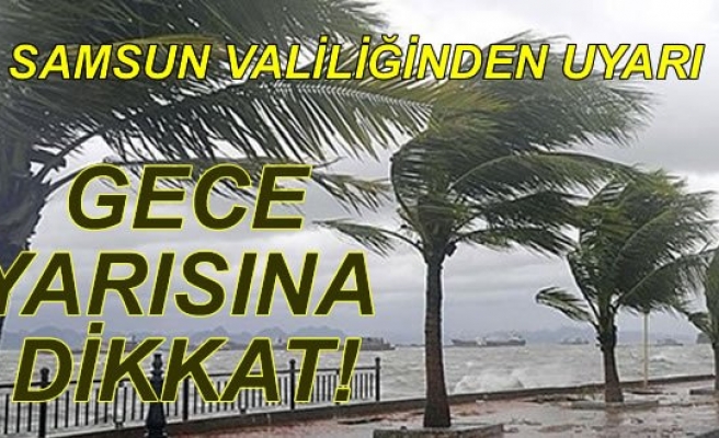 Samsun Valiliği, 'gece yarısı için şiddetli rüzgar' uyarısında bulundu.