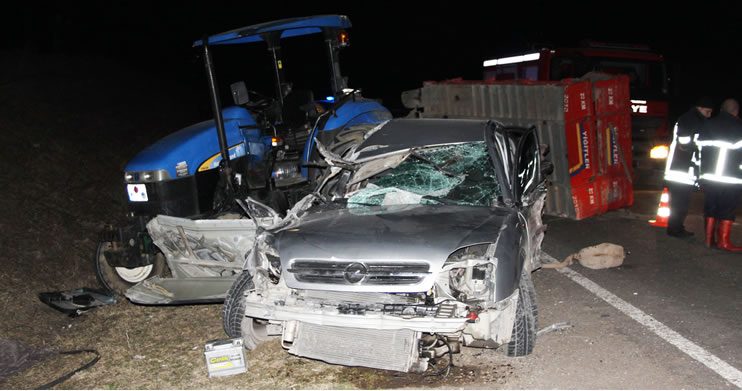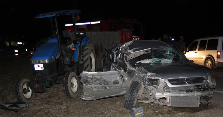 Çarpmanın etkisiyle savrulan Keskin idaresindeki otomobil aynı yönde seyir eden Ahmet Keskin'in kullandığı 55 PE 778 plakalı traktöre arkadan çarptı.