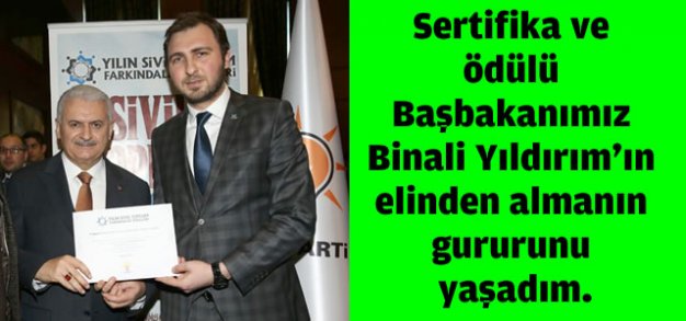 "Törende sertifika ve ödülü Başbakanımız Binali Yıldırım'ın elinden almanın gururunu yaşadım. TÜGVA olarak böyle anlamlı ve değerli bir proje yarışmasında dereceye girmek çok anlamlı. Down sendromlu gençlerimize yönelik Samsun’da yaptığımız projenin Türkiye genelinde dereceye girmesi bizleri ayrıca onurlandırdı. Emeği geçen tüm arkadaşlarıma teşekkür ediyorum."