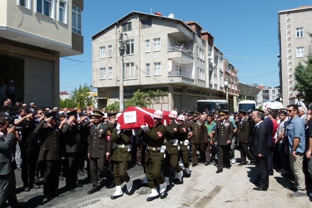 Evin önünde gözyaşı döken aile yakınları ve vatandaşlar, Uzman Onbaşı Orçun Yılmaz'ın resmine sarılarak ağıtlar yaktı. Cenaze evin önünden alınarak, Bafra Yavuz Selim Camiine getirildi.