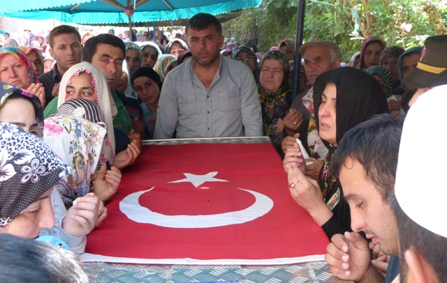 Muş-Bingöl Karayolunda geçirdiği trafik kazasında hayatını kaybeden 23 yaşındaki Uzman Onbaşı Orçun Yılmaz'ın cenazesi, Samsun'un Bafra ilçesi Altınkaya Mahallesi Şehit Aydın Uyar sokağında bulunan baba ocağında gözyaşları içerisinde babası Ramazan ve annesi Müjgan Yılmaz tabuta sarılarak, insanları gözyaşına boğdu.
