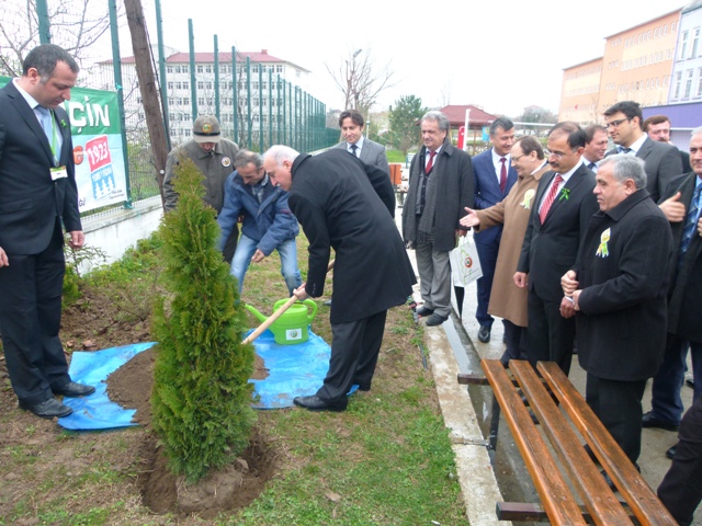 Samsun İl Valisi İbrahim Şahin,”Bugün malumunuz kent ormanına bir fidanda biz dikelim diye buradayız. 21-27 Mart tarihleri dünya ormancılık haftası münasebetiyle dünyada ve Türkiye’nin her yerinde etkinlikler yapılıyor. Bizim felsefemiz, inancımız, ‘Kıyamet kopuyor bile olsa elinizdeki fidanı dikiniz’ emridir. Onun için biz mutlak suretle hem fidanla hem de ormanla barışık yaşayacağız. Ağaç olmadan hayatımızı devam ettirmemiz söz konusu olamaz. 1 ağaç 40 insanın karbondioksit gazını temizliyor, 70 insana yetecek oksijen üretiyor. Onun için arkadaşlar olabildiğince fidan dikelim. Yeşili sevelim ama uzaktan değil yeşili içinde sevelim. Benim korkum önümüzdeki süreç içerisinde özellikle yanlış kentleşme etrafımızdaki ormanlık alanların kalkmasına veya bizden uzaklaşmasına neden oluyor. Bu nedenle her bulduğunuz toprak parçasına fidan dikin. Arkadaşlar günlük tutun, yazın. Çünkü yazan insan okur. Biz artık okumayı yazmayı unuttuk. Seyirci millet olduk. Okuyun ve mümkün mertebe yazın. Yazmak bir refleks geliştiriyor. Gelişmiş ülkenin insanlarına bakın daha çok okuyup yazıyorlar. Bizde yüz kişiye 1 kitap düşerken batılı ülkelerde 10-15 kişiye düşüyor” diye konuştu.