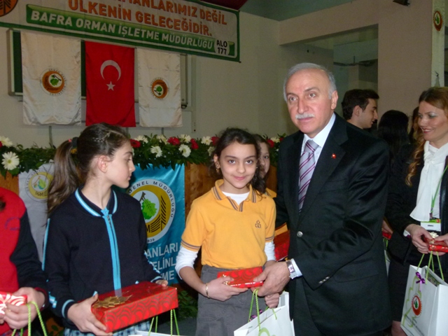 Orman Haftası etkinlikleri kapsamında okullar arası yapılan şiir, kompozisyon ve resim yarışmalarında birinci olan öğrencilere Samsun Valisi İbrahim Şahin tarafından ödülleri verildi.