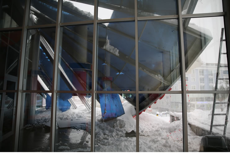 Mevlana Mahallesi'nde bulunan Atakum Belediyesi Eğitim, Eğlence ve Kültür Merkezi'nin önünde bulunan demir profilden oluşan çatı yoğun kar yağışı nedeniyle çöktü.