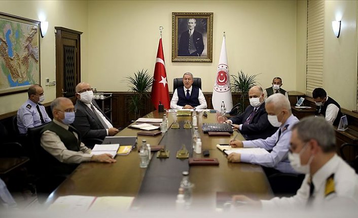Savunma ve güvenlik konuları kapsamında Doğu Akdeniz'deki gelişmeler, terörle mücadele harekatları ve koronavirüsle mücadelede alınan tedbirlerin de ele alındığı toplantıda talimatlar veren Bakan Akar, Türk Silahlı Kuvvetlerinin yoğun bir dönemden geçtiğini belirtti.