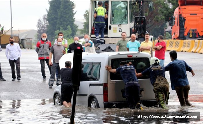 Kocaeli'nin bazı bölgelerinde aniden bastıran sağanak, hayatı olumsuz etkiledi.