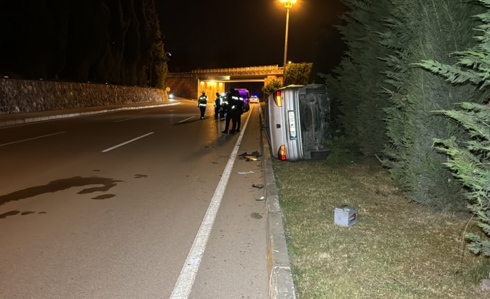 Karabük'te köprü duvarına çarparak devrilen otomobilin sürücüsü yaralandı.