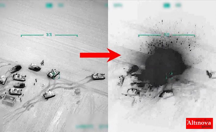 Güvenlik kaynaklarından edinilen bilgiye göre, havadan ve topçu atışlarıyla rejim hedeflerinin vurulma anları insansız hava araçlarıyla görüntülendi.Görüntülerde, rejime ait zırhlı araç konvoylarının, hareketli unsurların, karargah ve cephanelik olarak kullanılan merkezlerin vurulma anları yer aldı.