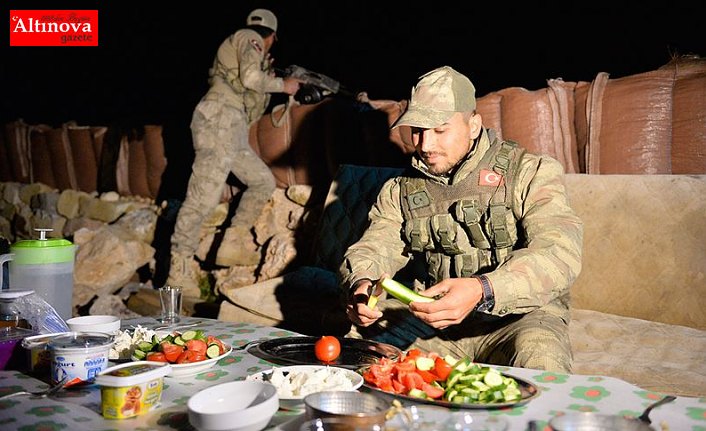 Ramazanın ilk sahurunu üs bölgesinde sırayla yapan korucular, vatanın bekası ve vatandaşların huzuru için 7 gün 24 saat nöbet tutuyor.