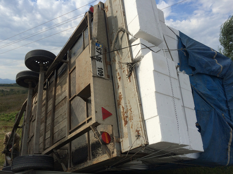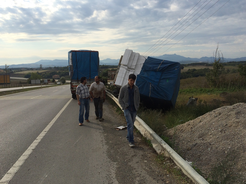 Sinop’tan Samsun istikametine giden Strafor yüklü kamyonet Saat: 9:10 Sabah saatlerinde Bafra Kazandere mevkinde Rüzgarın Şiddetiyle kamyonete ilave takılan dorsesi devrildi.