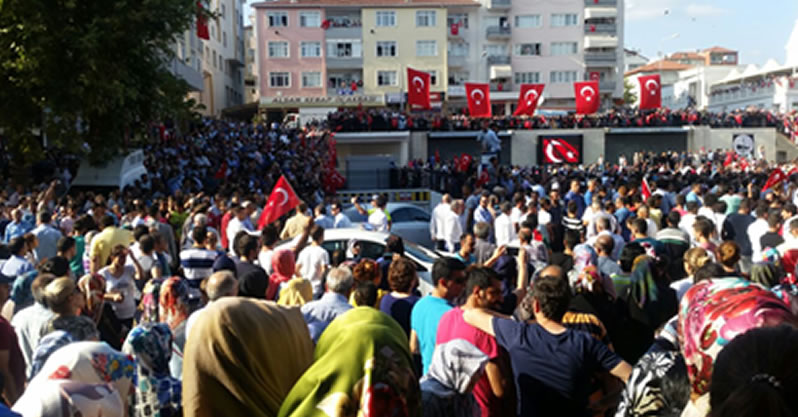 Kavak'ta tüm esnaflar dükkanlarının camlarına Türk Bayrağı asarak şehitlerine sahip çıktıklarını gösterdiler.