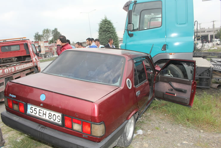Alınan bilgiye göre, Okay Zorlu (32) yönetimindeki 55 EH 809 plakalı otomobil, otogar ışıkları mevkisinde sürücünün direksiyon hakimiyetini kaybetmesi sonucu yol kenarında park halindeki 55 K 0994 plakalı tıra çarptı.