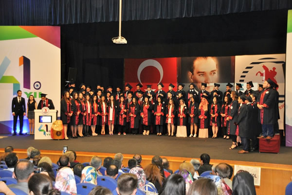 Tören, sırayla akademisyenlerin elinden diplomalarını alan mezunların, keplerini coşkuyla havaya fırlatmasıyla son buldu.