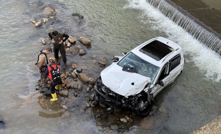 Bariyere çarpan otomobil, yaklaşık 10 metre yükseklikten dereye düştü.