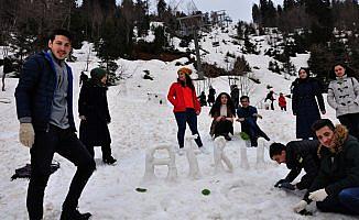 Üniversite öğrencileri kar şenliğinde Mehmetçiği unutmadı