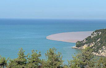 Zonguldak'ta yağışla gelen çamurlu su denizin rengini değiştirdi