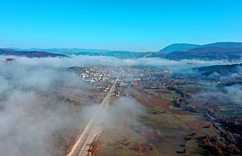 "Kanyonlar şehri" Pınarbaşı'da sis manzarası drone ile görüntülendi