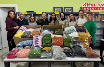 Kadınların kütüphanede sesli kitap dinlerken ördüğü kıyafetler depremzede çocuklara ulaştı