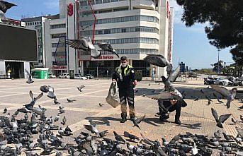 Samsun'da aç kalan kuşlara trafik polisleri yem verdi