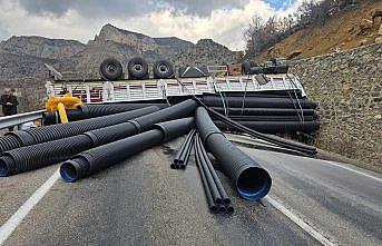 Gümüşhane'de istinat duvarına çarpan tırın sürücüsü yaralandı