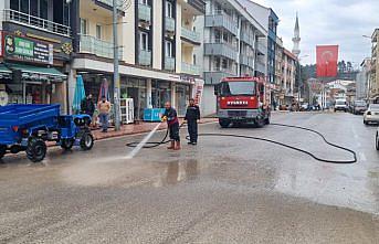 Düzce'de içme suyu hattı borusunun patladığı cadde trafiğe kapatıldı